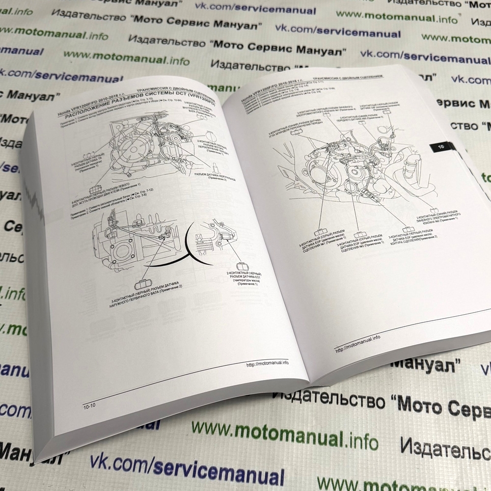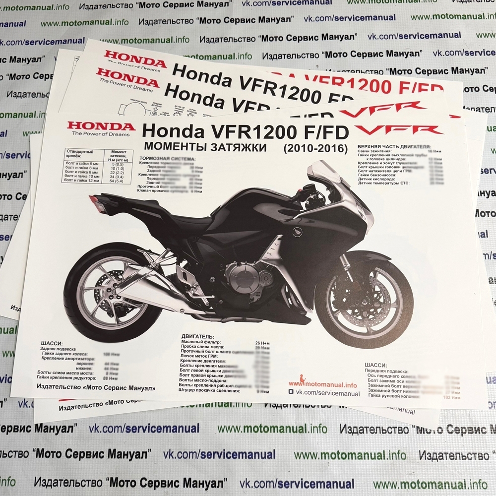 Сервисный (ремонтный) Мануал на Honda VFR1200 F/FD (2010-2016) на русском языке, размером 810стр. В книге описаны процедуры разборки, сборки и регулировки всех узлов мотоцикла; алгоритм поиска неисправностей и электросхемы (3 шт). Книга создана из нескольких электронных мануалов на разные модификации и года. Книга подходит для двух моделей F и FD (МКПП и АКПП). Перевод на русский язык ручной, осознанный, не автоГугл.