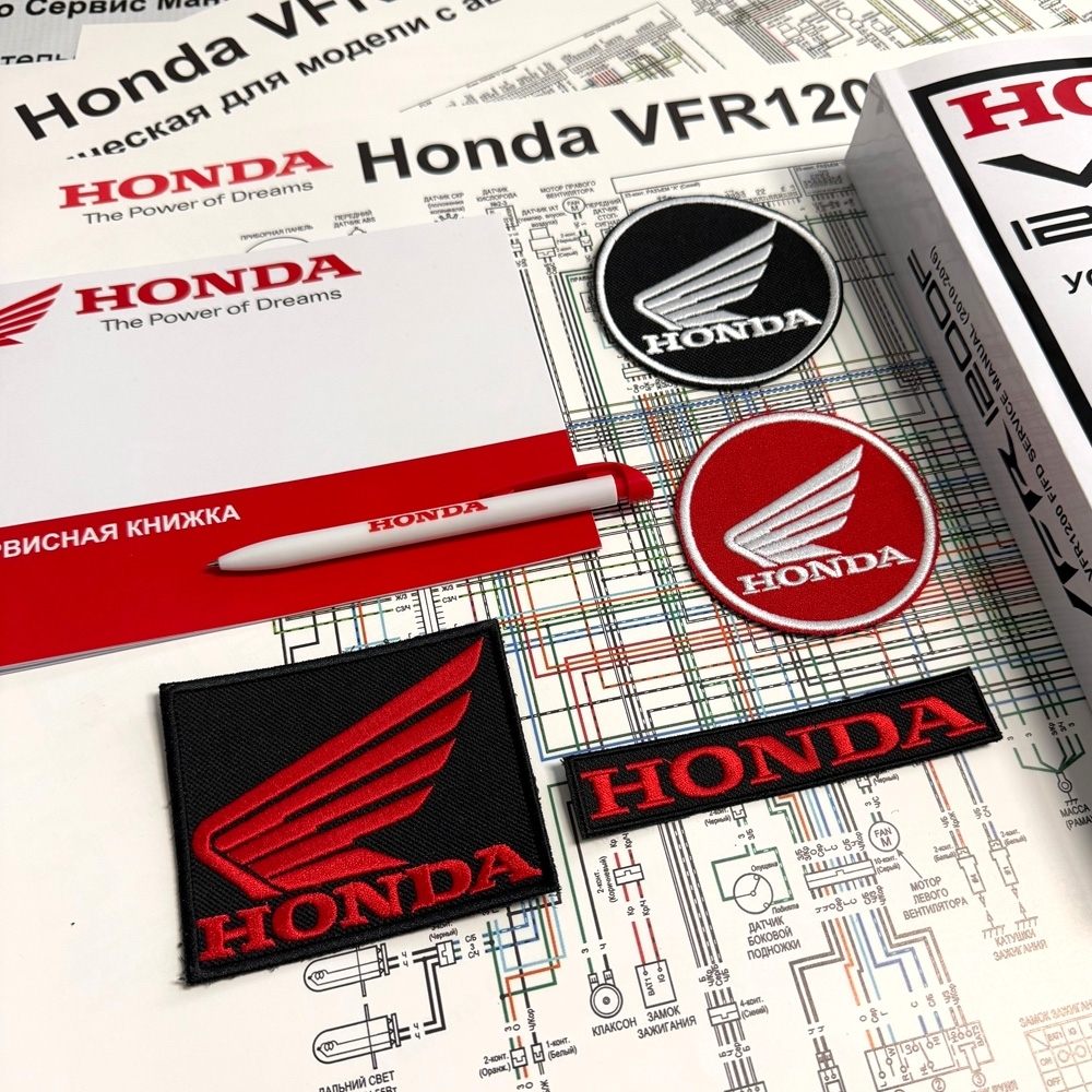 Дополнительные товары: 1. Плакат А2 "ТехноШпаргалка" (350 руб) 2. Плакат А2 "ЭлектроСхема" (350 руб) 3. Нашивка "Хонда" с крылом 95х80 (350 руб) 4. Нашивка "Хонда" без крыла 120х21 (200 руб) 5. Нашивка "VFR" 120х24 (200 руб) 6. Сервисный Блокнот Хонда (300 руб) 7. Брелок из нержавейки Хонда (350 р) 8. Фляжка из нержавейки Хонда (600 р)