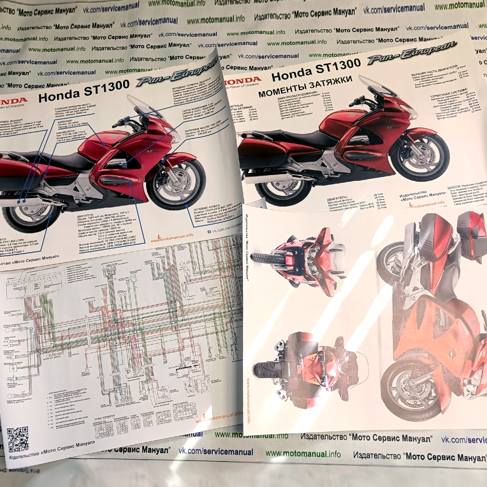 = Дополнительные товары по ST1300: 1. Плакат А2 "ТехноШпаргалка" (350 руб) 2. Плакат А2 "ЭлектроСхема Стандарт" (350 руб) 3. Плакат А2 "ЭлектроСхема с АБС" (350 руб) 4. Плакат А2 "Моменты Затяжки" (350 руб) 5. Плакат А2 "Постер с ST1300 c трёх сторон" (350 р) 6. Нашивки "Pan European" 2 вида (по 200 руб) 7. Нашивки "Honda" 3 вида (по 350 руб) 8. Сервисный блокнот Хонда (300 руб) 9. Раскраска Мотоциклы (150 руб)