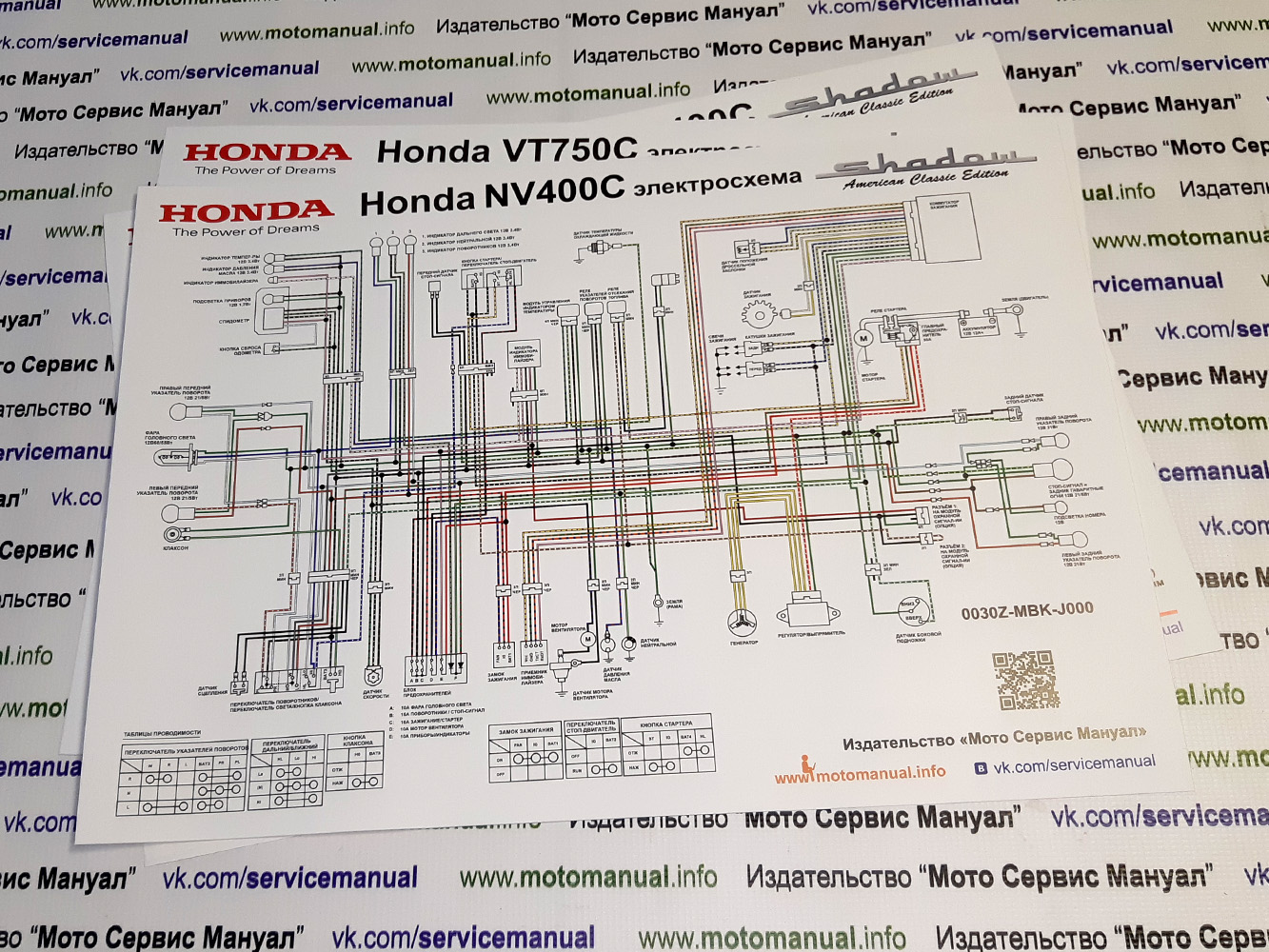 Плакат-ЭлектроСхема: Плакат размером А2 (600х400) на плотной постерной бумаге. ➤ На нём нарисована цветная электросхема мотоцикла в высоком качестве и со всеми названиями электрокомпонентов мотоцикла. ➤ Это позволяет удобно работать со схемой при поиске электронеисправностей. Зачастую в мануала схемы черно-белые. Укажите в примечании к заказу на какую модель вам нужна схема 400 или 750 ?
